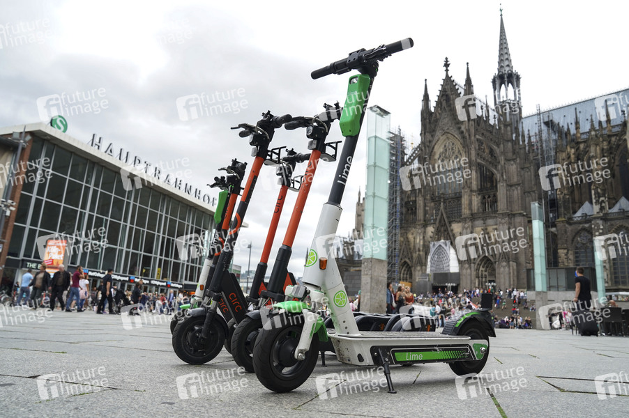 E-Scooter der Anbieter circ und Lime am Bahnhofsvorplatz. Köln, 18.08.2019