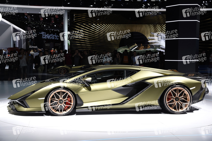 Lamborghini Sian mit V12-Hybrid auf der Internationalen Automobil-Ausstellung 2019 auf dem Messegelände. Frankfurt am Main, 19.09.2019
