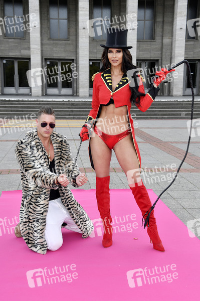 Calvin Kleinen und Micaela Schäfer bei der Generalprobe für das Opening der 27. Venus Berlin vor dem Haupteingang Nord der Messe Berlin. Berlin, 07.10.2024