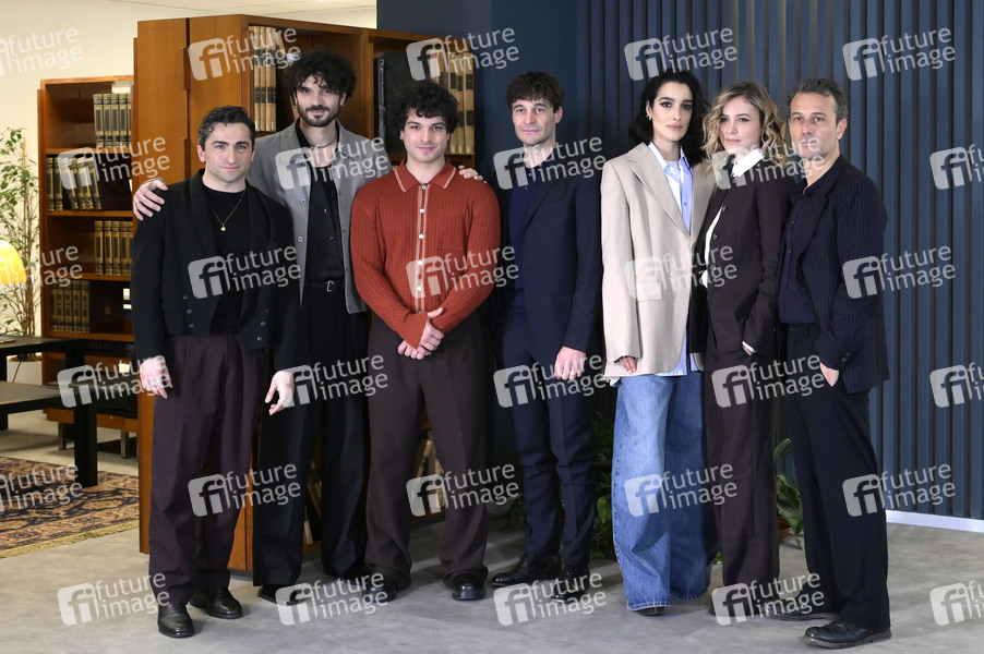 Roberto Scorza, Giacomo Stallone, Leo Gassmann, Lino Guanciale, Levante, Noemi Brando und Bernardo Casertano beim Photocall zur Rai TV-Serie 'L'Invisibile - La Cattura di Matteo Messina Denaro' im Rai Hauptsitz Via Alessandro Severo. Rom, 27.01.2026