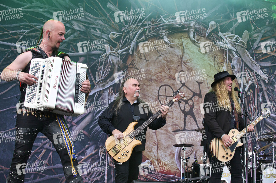 Sami Perttula, Jarkko Aaltonen und Kalle Savijärvi vonKorpiklaani live auf dem Summerside Festival 2024 beim Flugplatz. Grenchen, 21.06.2024