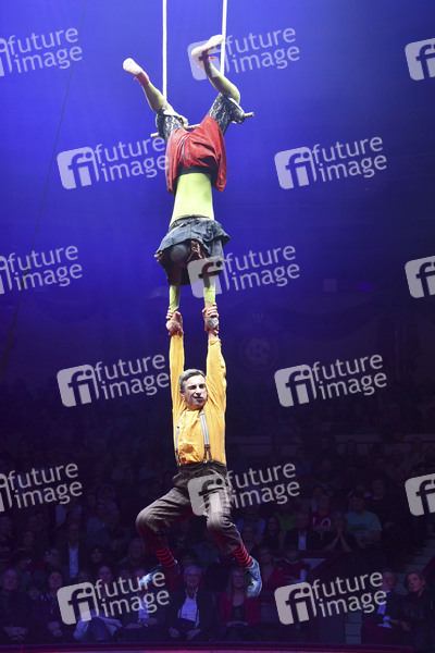 Simone Fassari and Camilla Pessi von Compagnia Baccala bei der Premiere der Circus Krone Winterspielzeit mit dem Programm 'Ich.Du.Wir.Krone' im Circus Krone Bau. München, 25.12.2025