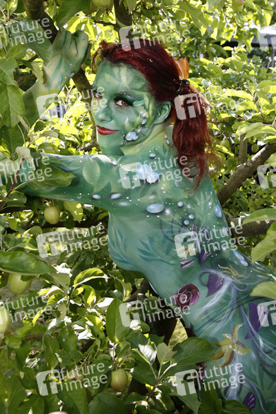 Bodypainting, Erotik, Frau, nackt, draußen, weiblich, Apfel, Apfelbaum, Baum, woman, nude, outdoor, female, erotic, apple, tree