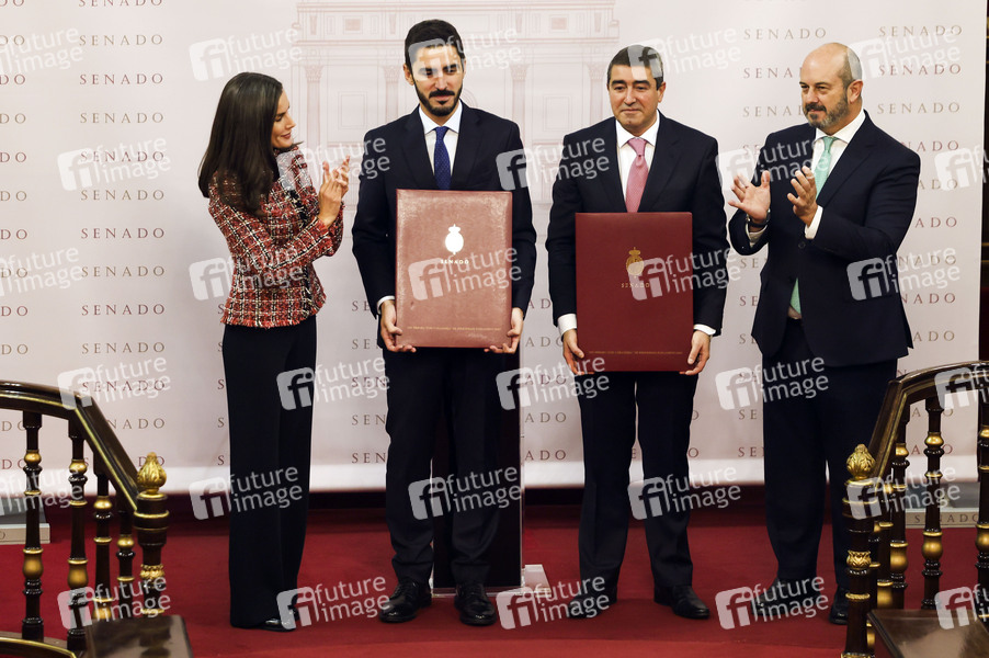 Königin Letizia von Spanien, Juan Manuel Lamet Moya, Pablo Rodriguez Lago und Pedro Rollan bei der Verleihung der Luis Carandell Journalismus Awards 2024 im Senatspalast. Madrid, 21.11.2024