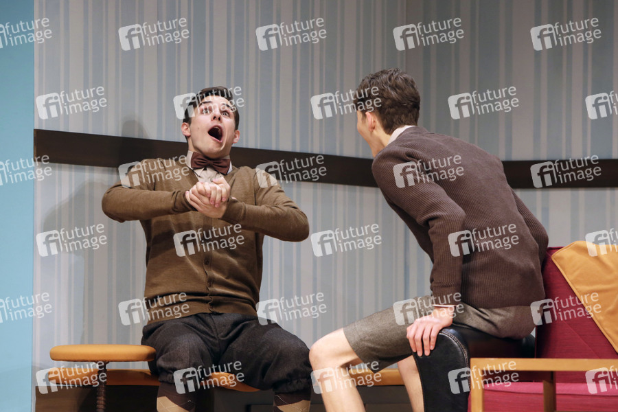 Lucas Reiber und Sandro Lohmann bei der Fotoprobe 'Eine ganz normale Familie' im Theater am Kurfuerstendamm. Berlin, 06.03.2013