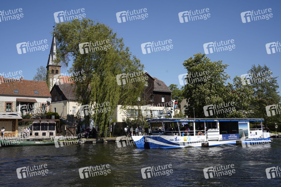 Die Elektrofähre F23 setzt seit dem 1. Mai 2024 wieder zwischen der Haltestelle Spreewiesen und Kruggasse über. Rahnsdorf, 01.05.2024