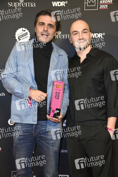 Juan Moreno und Sinan Sevinc bei der 26. Verleihung der 1Live Krone 2025 im Lokschuppen. Bielefeld, 04.12.2025