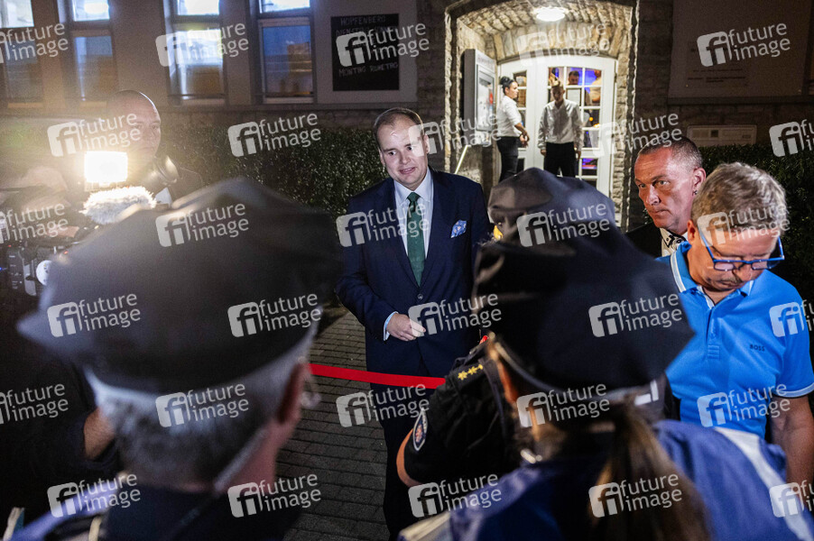 Die Wahlparty der AfD im Gasthaus Hopfenberg nach der Landtagswahl in Thüringen fand ohne Pressevertreter statt. Nach einem Gerichtsurteil lud die Partei alle Journalisten wieder aus. Mehrere Medien hatten ihren Zugang zuvor eingeklagt. IIm Bild: Torben Braga (AFD) lehnt die Presse auf der AFD Wahlparty erneut ab. Erfurt, 01.09.2024