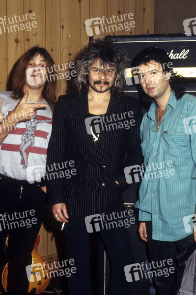 Michael 'Würzel' Burston, Phil 'Philthy Animal' Taylor und Phil 'Wizzö' Campbell von Motörhead bei einem Photoshooting im Tonstudio. London, 12.12.1991