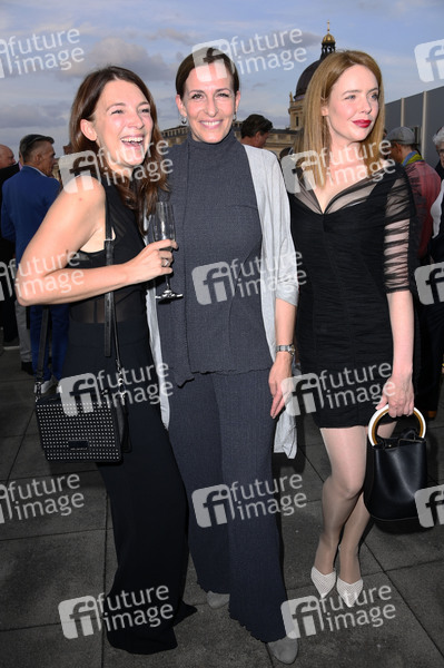 Iris-Mareike Steen, Ulrike Frank und Olivia Marei beim Eröffnungsempfang der UFA Filmnächte 2025 auf der Dachterrasse der Bertelsmann Repräsentanz. Berlin, 27.08.2025