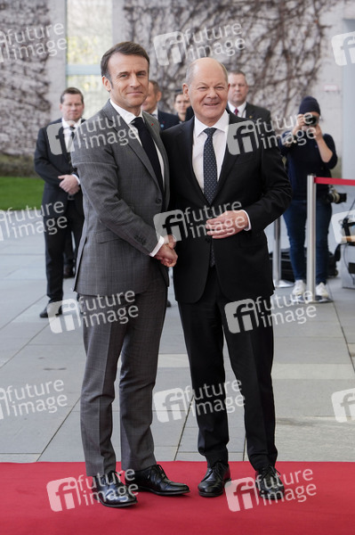 Emmanuel Macron und Olaf Scholz beim Empfang des Staatspräsidenten der Französischen Republik zu einem gemeinsamen Gespräch im Bundeskanzleramt. Berlin, 15.03.2024