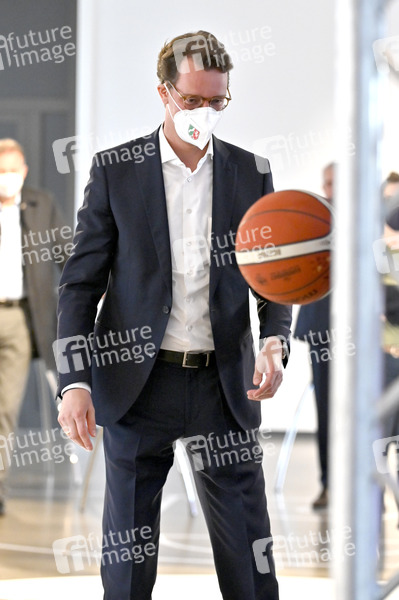 Hendrik Wüst bei der Pressekonferenz zur 41. Basketball-Europameisterschaft 'FIBA Eurobasket 2022' im im Deutschen Sport & Olympia Museum. Köln, 29.04.2022