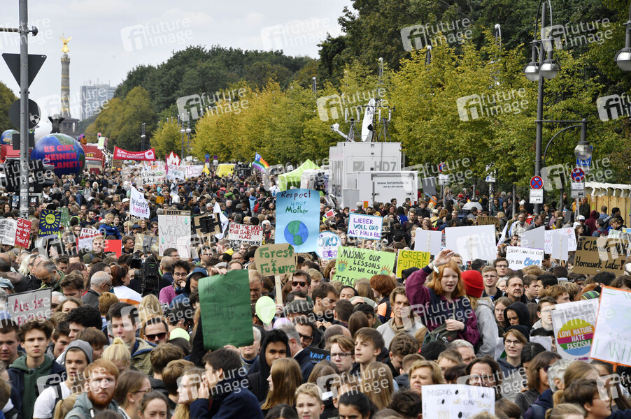 Demonstranten bei der 'Fridays for Future' Demonstration im Rahmen des weltweiten Klimastreiks am Brandenburger Tor. Berlin, 20.09.2019
