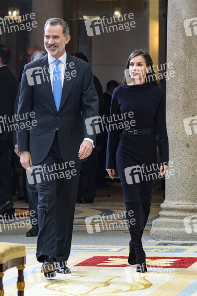 König Felipe VI. von Spanien und Königin Letizia von Spanien bei der Verleihung der Premios Nacionales de Investigación 2019 im Palacio del Pardo. Madrid, 17.02.2020