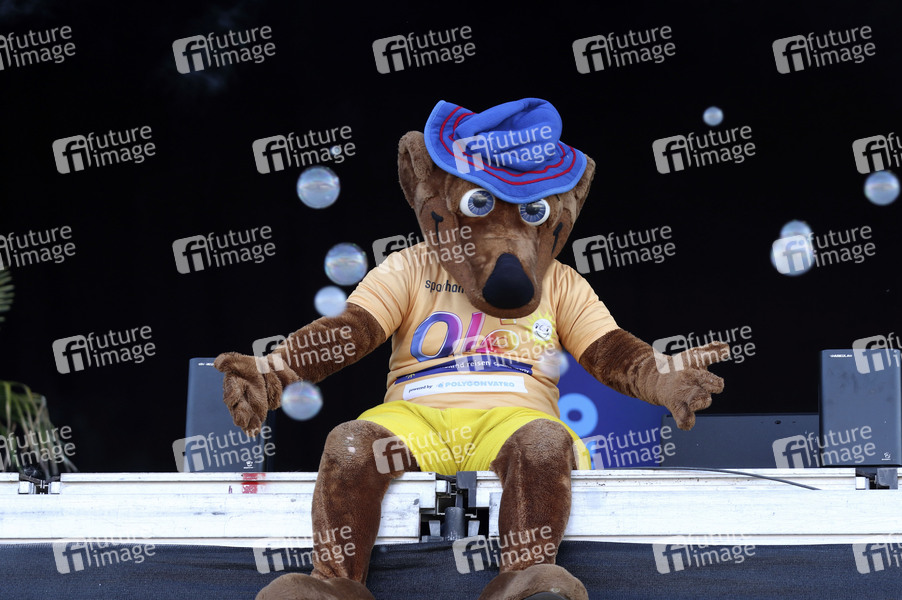 Maskottchen Olé Party beim Strandkorb Open Air 2021 - Mönchengladbach Olé im Sparkassen Park. Mönchengladbach, 14.08.2021