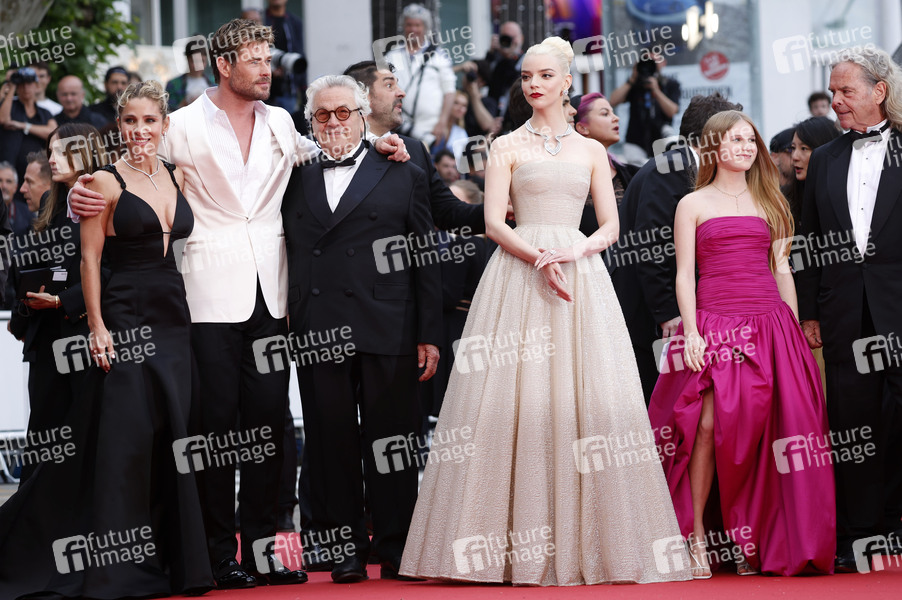 Elsa Pataky, Chris Hemsworth, George Miller, Anya Taylor-Joy, Alyla Browne und Doug Mitchell bei der Premiere des Kinofilms 'Furiosa: A Mad Max Saga' auf dem Festival de Cannes 2024 / 77. Internationale Filmfestspiele von Cannes im Palais des Festivals. Cannes, 15.05.2024