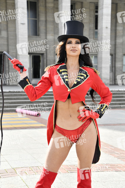 Micaela Schäfer bei der Generalprobe für das Opening der 27. Venus Berlin vor dem Haupteingang Nord der Messe Berlin. Berlin, 07.10.2024