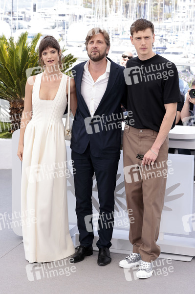Charlbi Dean Kriek, Ruben Östlund und Harris Dickinson beim Photocall zum Kinofilm 'Triangle of Sadness' auf dem Festival de Cannes 2022 / 75. Internationale Filmfestspiele von Cannes am Palais des Festivals. Cannes, 22.05.2022