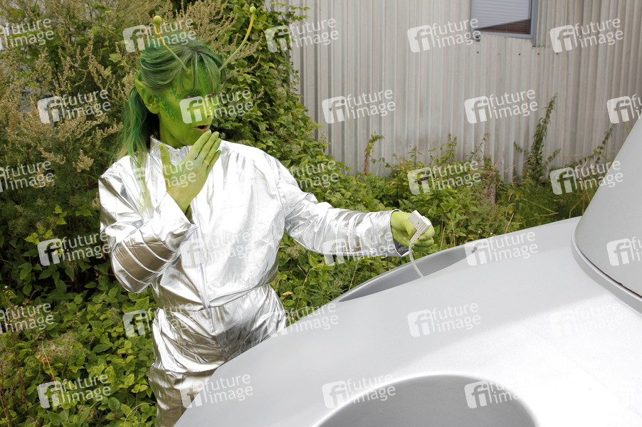 Bodypainting, Body-Painting, Cosplay, Cosplayer, Körperkunst, Körperfarben, Farbe, Bemalung, Kunst, Make-up, Latexapplikationen, Maskenbildnerei, unbekanntes Flugobjekt, Außerirdische, fliegende Untertasse, Raumschiff, fremde Wesen, Landung, Invasion, Science Fiction, body painting, body art, latex applications, unknown flying object, spacecraft, flying saucer, alien, strangers, landing, colors
