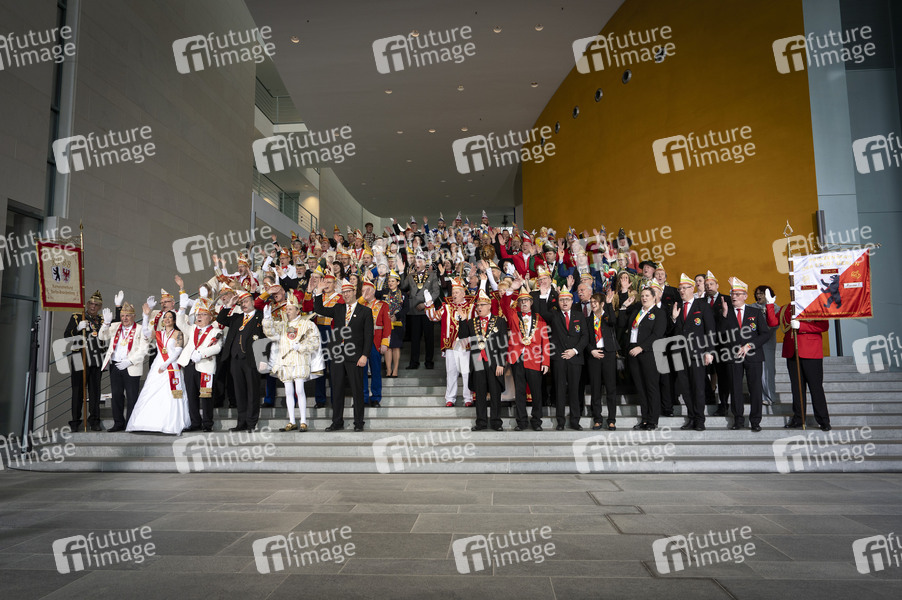 Olaf Scholz und Klaus-Ludwig Fess beim Empfang von Karnevalisten im Bundeskanzleramt. Berlin, 05.02.2025