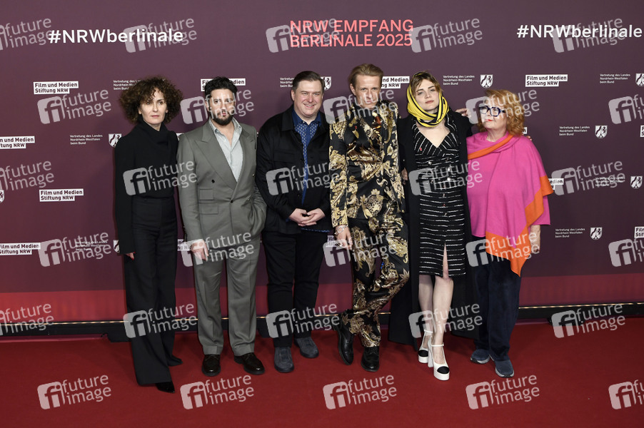 Marie-Lou Sellem, John Magaro, Michael Chernus, Alexander Scheer, Mala Emde und Vera Brandes beim 22. NRW Empfang des Landes NRW und der Film- und Medienstiftung NRW im Rahmen der Berlinale 2025 in der Vertretung des Landes Nordrhein-Westfalen. Berlin, 16.02.2025