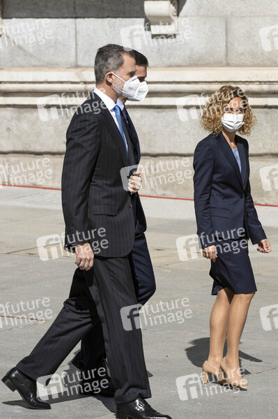 König Felipe von Spanien, Pedro Sanchez und Meritxel Batet bei der Feier zum 40. Jahrestag vom 23-F, dem vereitelten Putsch vom 23. Februar 1981, im Congreso de los Diputados. Madrid, 23.02.2021