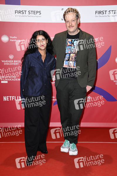 Banafshe Hourmazdi mit Gast bei der 26. Verleihung der First Steps Awards 2025 im Theater des Westens. Berlin, 06.10.2025