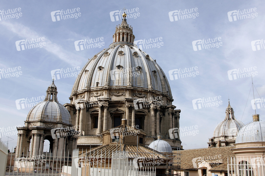Vatikan, die größte der vier Patriarchalbasiliken in Rom, Zentrum der Vatikanstadt, fasst 60.000 Personen, Fläche von 15.160 m², eine der größten Kirchen der Welt, die Bauzeit betrug rund 120 Jahre, die doppelschalige Kuppel der Basilika St. Peter ist das größte freitragende Ziegelbauwerk der Welt