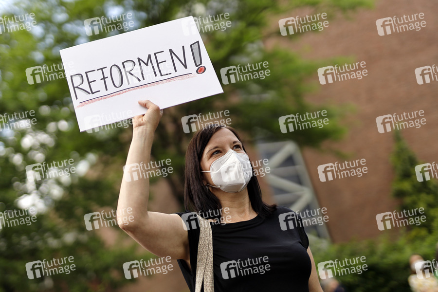 Bei einer Kundgebung auf dem Börsenplatz kritisieren Gläubige aus dem Erzbistum Köln und Aktivisten der Bewegung Maria 2.0 das Verhalten der Kirche und Erzbischof Rainer Maria Kardinal Woelki bei der Aufarbeitung des Missbrauchskandal. Am Nachmittag trifft auch eine Pilgergruppe von Pfarrer Klaus Koltermann aus Dormagen Nievenheim mit 60 Christen nach 40 Km Fußmarsch unter dme Motto 'Aufbruch nach Köln' auf dem Börsenplatz ein. Koltermann hat sich als einziger Pfarrer in Deutschland für den Rücktritt von Kardinal Woelki ausgesprochen. Köln, 12.06.2021