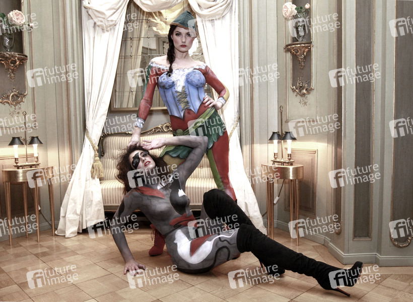 Rattenfänger Bodypainting mit den Models Lisa und Janina im Schlosshotel Münchhausen, Aerzen. Body Paint Künstler: Jörg Düsterwald