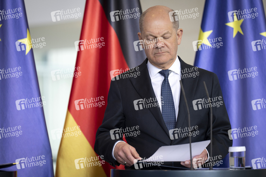 Olaf Scholz beim Empfang des Präsidenten des Europäischen Rates zu einem gemeinsamen Gespräch mit anschließendem Pressestatement im Bundeskanzleramt. Berlin, 12.03.2025