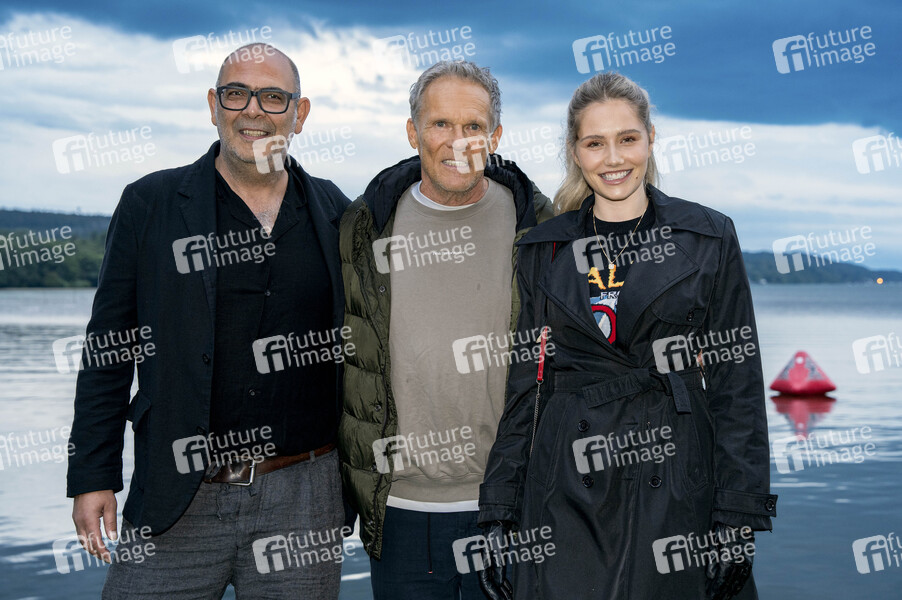 Hannes Ringelstetter, Christian Tramitz und Mitsou Jung bei der Premiere von zwei neuen Folgen der ARD-Vorabendserie 'Hubert ohne Staller' auf dem Open Air Starnberg 2025 im Open Air Kino im Seebad. Starnberg, 05.08.2025