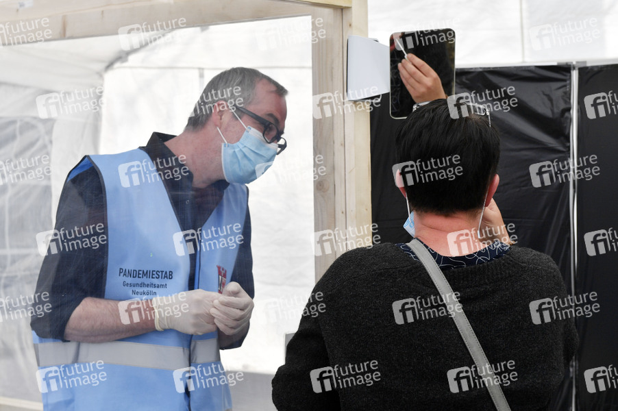 Eröffnung einer Drive-In Corona-Teststation auf dem Parkplatz vor dem Estrel-Hotel. Berlin, 24.04.2020