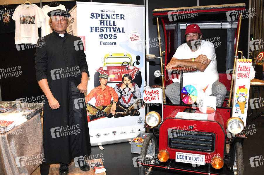 Terence Hill Figur und Bud Spencer Doppelgänger auf der German Film Comic Con Babelsberg im Filmpark Babelsberg. Potsdam, 06.07.2024