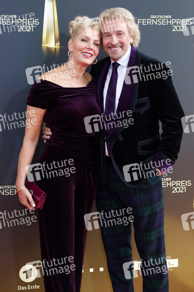 Thomas Gottschalk mit Partnerin Karina Mroß bei der Verleihung des Deutschen Fernsehpreises 2021 im Tanzbrunnen. Köln, 16.09.2021
