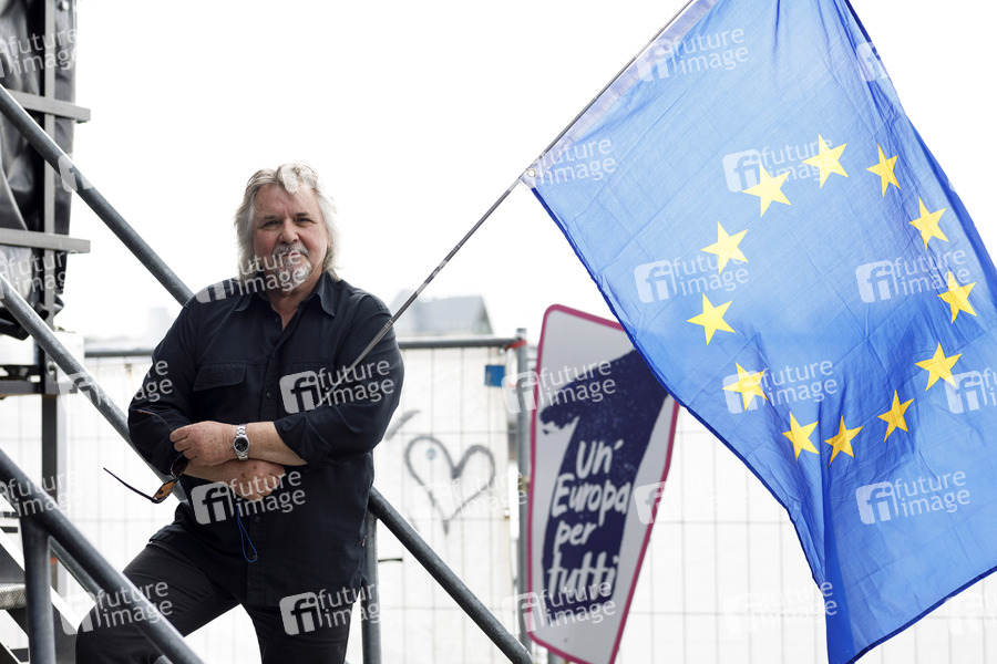 Sänger, Musiker, Europa, Europawahl, proeuropäisch, EU-Befürworter, EU-Wahl, EU-Politik, Demo, Demonstration, Kundgebung, Demonstranten, EU, EU-Befürworter, Europa-Flagge, EU-Flagge, gegen Nationalismus, gegen Populismus, Bürgerinitiative, geeintes Europa, pro-Europa-Bewegung, Europäische Union, Europäische Idee, gegen Kleinstaaterei, Meinungsfreiheit, Versammlungsfreiheit, Personenfreizügigkeit, Flüchtlingspolitik, Pulse of Europe, Dienstleistungsfreiheit, freier Warenverkehr, freier Zahlungsverkehr, Binnenmarkt, Europäische Identität, Euro, Wahlkampf, Politik, Europapolitik, Plakate