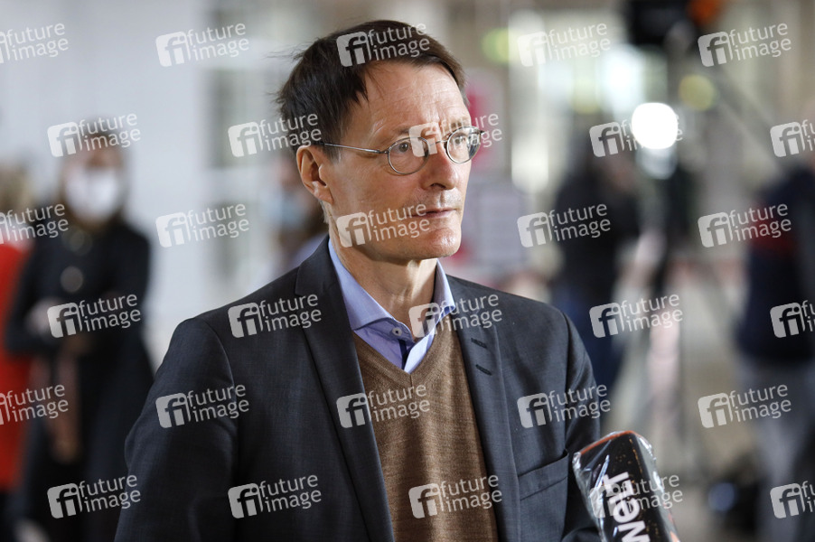 Karl Lauterbach beim Pressestatement nach der Befragung der Bundesregierung in der 217. Sitzung des Deutschen Bundestages im Reichstagsgebäude. Berlin, 24.03.2021