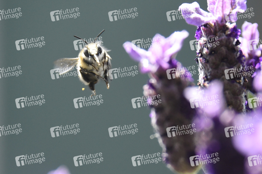 Apis, Westliche Honigbiene, Biene, Bienen, Apis mellifera, Apidae, Insektengruppe, Insekten, Hautflügler, Tiere, Balkon, Frühling, Frühlingswetter, Lavendel, Schmalblättriger Lavendel, Echter Lavendel, Lavandula angustifolia, Lippenblütler, Lamiaceae