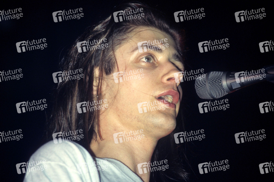 Mike Edwards von Jesus Jones live im Town & Country Club. London, 27.02.1991