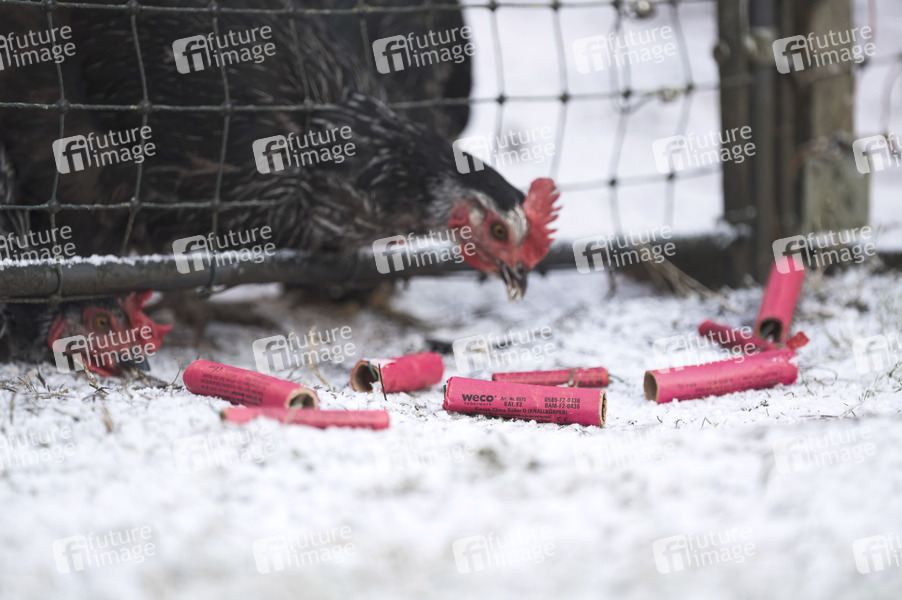 Neujahrsnacht, Silvester, Silvesternacht, Jahreswechsel, Tradition, Feuerwerk, Feinstaub, Feinstaubwerte, Unweltverschmutzung, CO2, Höhenfeuerwerk, Feuerwerker, Pyrotechnik, Großfeuerwerk, Raketen, Silvesterraketen, Böller, Feuerwerk-Show, Feuerwerk-Spektakel, Nachthimmel, Feuerwerkskörper, Frohes Neues Jahr, Feuerwerksbatterie, Feuerwerkskörper, Knallköprer, Luftverschmutzung, Pyrotechnik, Silvesterböller, Silvesterfeuerwerk, Müll, Müllbeseitigung, Müllabfuhr, Straßenreinigung, Stadtreinigung, Sauberkeit, Feuerwerksreste, Abfallbehandlung, Hühner, Symbolfoto, Symbolbild