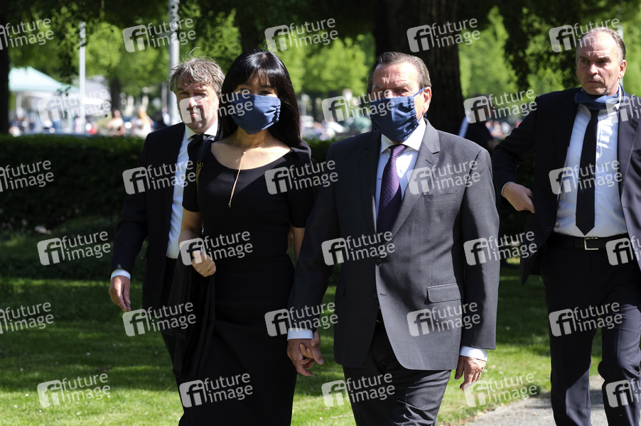 Gerhard Schröder mit Ehefrau Schröder-Kim So-yeon bei der Gedenkfeier zum Tag der Befreiung - 75. Jahrestag der Kapitulation des Nationalsozialistischen Deutschlands auf dem Ehrenfriedhof am Maschsee-Nordufer. Hannover, 08.05.2020