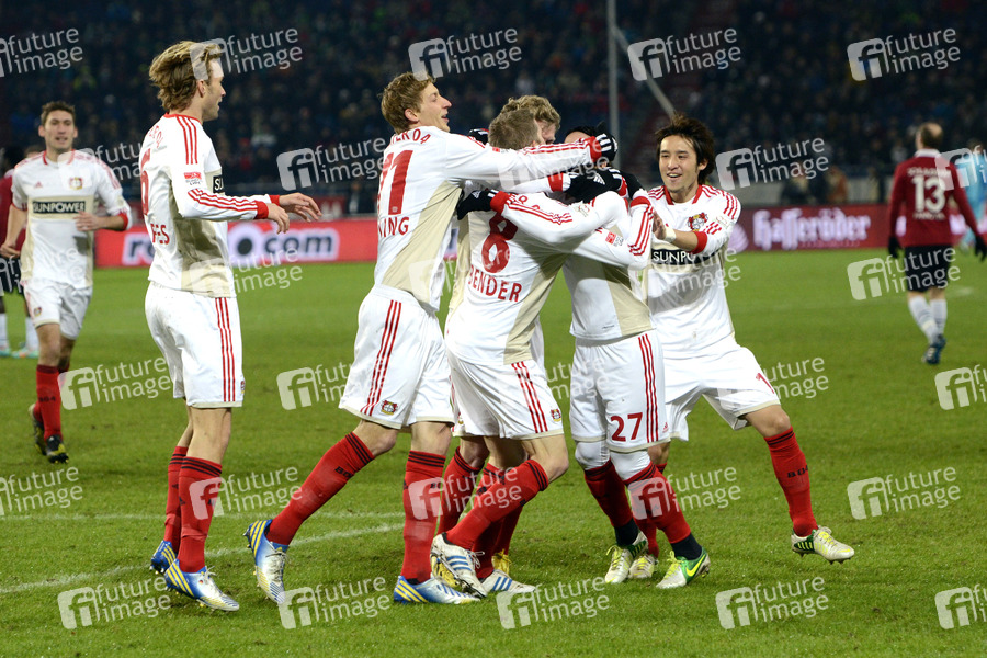 Leverkusen Spieler nach dem 1:0 durch Gonzalo Castro