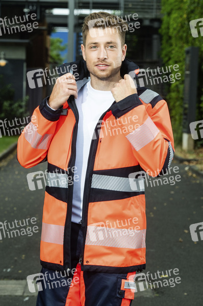 Dominik Flade bei einem Fototermin mit dem dem Deutschen Roten Kreuz e.V. am Set der RTL TV-Serie 'Alles was zählt' in den MMC-Studios in Ossendorf. Der AWZ-Schauspieler bereitet sich mit Hilfe des DRK auf seine Rolle des Rettungssanitäters vor. Köln, 23.06.2021