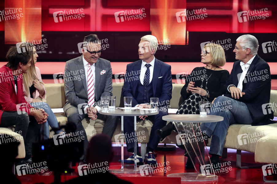 Matze Knop, Bianca Claßen, Götz Alsmann, Guido Cantz, Mary Roos und Sky du Mont bei der Aufzeichnung der ARD-Unterhaltungsshow 'Verstehen Sie Spass?' in den Bavaria Studios. Geiselgasteig bei München, 03.04.2019