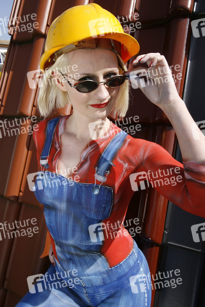 Bodypainting und Photoshooting mit Model Alexandra auf den Gelände von Bauelemente Simon in Hameln. Body Painting Künstler: Jörg Düsterwald