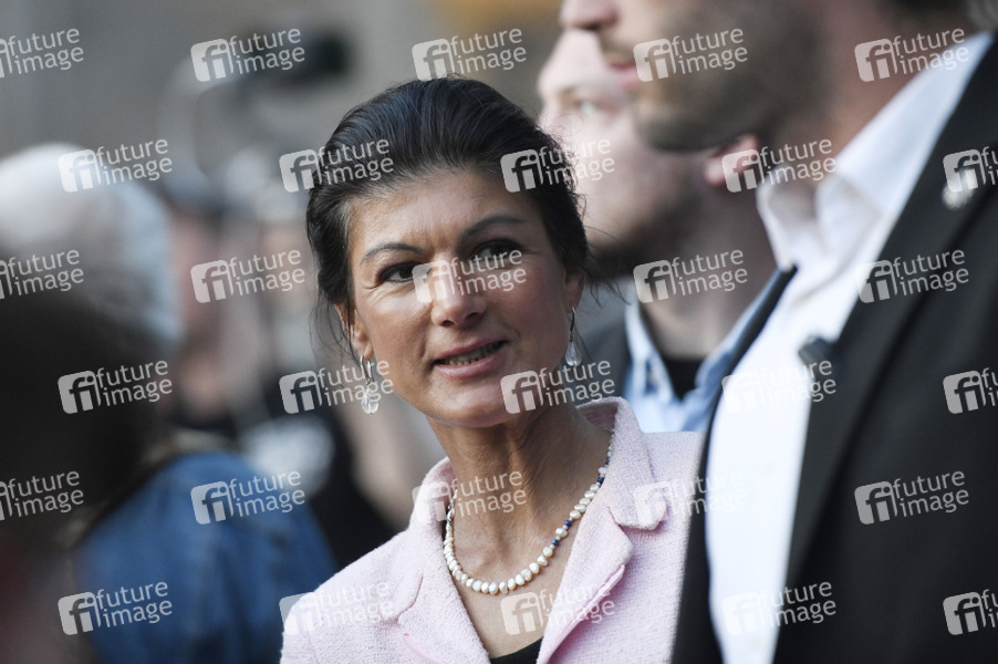Politik, Rede, Demokratie, Wahl, Wahlkampf, Partei, Wahlkampfveranstaltung, Parteienwerbung, Kampagne, Wahlen, Wahlkampagne, Wahlkampftour, Wahlkampfauftritt, Europawahl, Europawahlkampf, Europäische Union, EU, Europäisches Parlament, Europaparlament, Kandidatin, Politikerin, Bündnis Sahra Wagenknecht