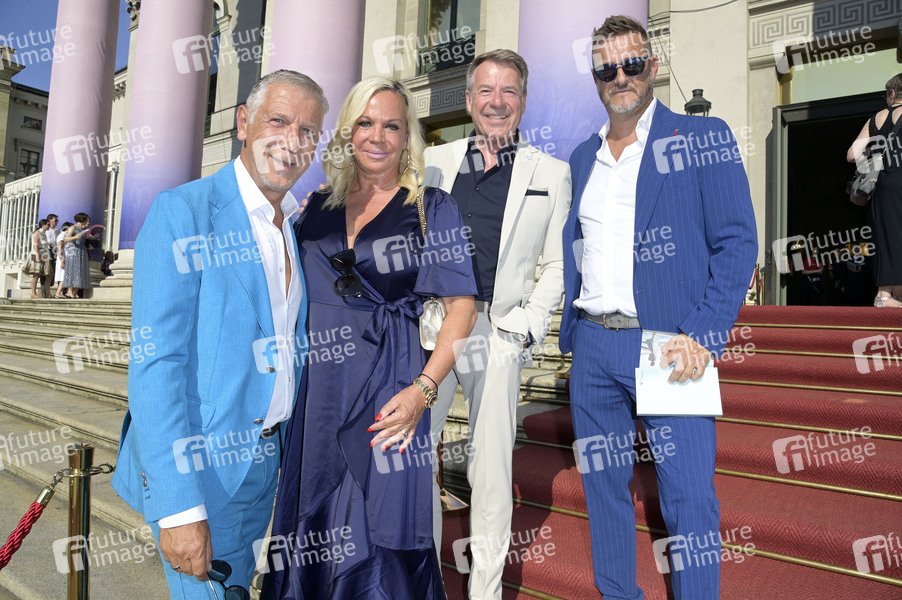 Peter Schäfer, Birgit Fischer-Höper, Patrick Lindner und Christian Fischer beim Event Oper für alle 2024 im Rahmen der Münchner Opernfestspiele im Nationaltheater mit der Live-Opernübertragung von Giacomo Puccinis Tosca auf dem Max-Joseph-Platz. München, 27.07.2024