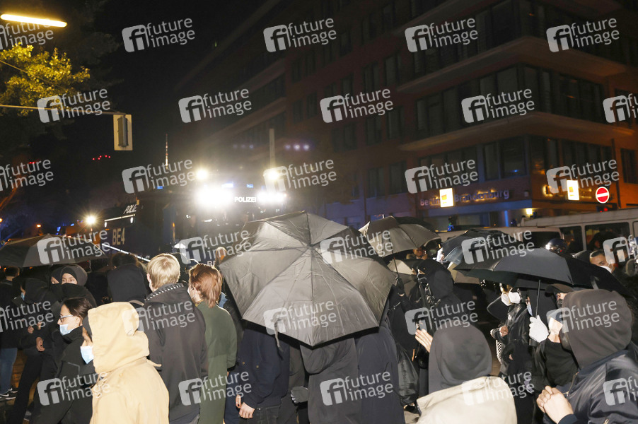 Bei einer Demo gegen die Räumung des linksautonomen Bauwagen-Camps 'Köpi' in Berlin-Kreuzberg ist es zu Ausschreitungen gekommen. Dabei wurden Polizisten mit Flaschen, Steinen und Feuerwerkskörpern beworfen. Unbekannte haben in der Reichenbergerstraße Scheiben mehrerer Autos zerschlagen, Verkehrsschilder in parkende Autos gerammt und Dixieklos umgeschubst. Laut Polizei waren 7.000 bis 8.000 Teilnehmer vor Ort. Berlin, 15.10.2021