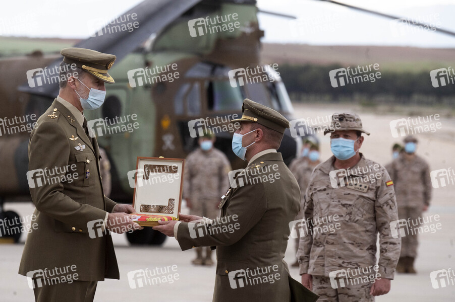 König Felipe VI. von Spanien beim Ehrenempfang auf der Torrejón Air Base für die letzten Soldaten die aus ihrem Einsatz in Afghanistan zurück kommen,. Die Beteiligung Spaniens am Krieg in Afghanistan begann am 27. Dezember 2001. Torrejón de Ardoz, 13.05.2021