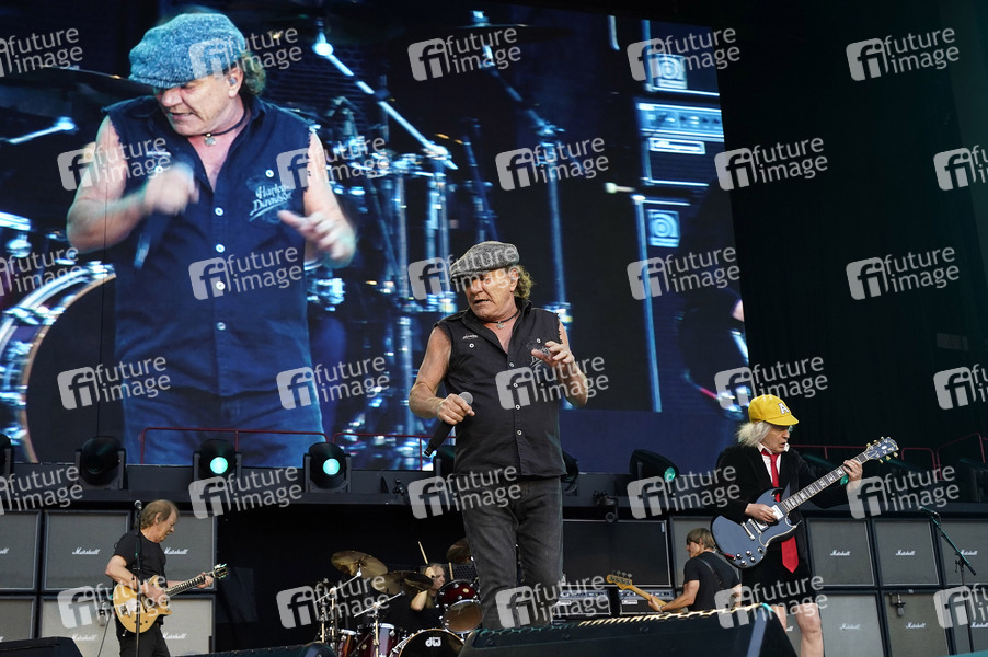 Stevie Young, Matt Laug, Brian Johnson, Chris Chaney und Angus Young von AC/DC live bei einem Konzert der 'Power Up Tour - Europa 2025' im Olympiastadion Berlin. Berlin, 30.06.2025